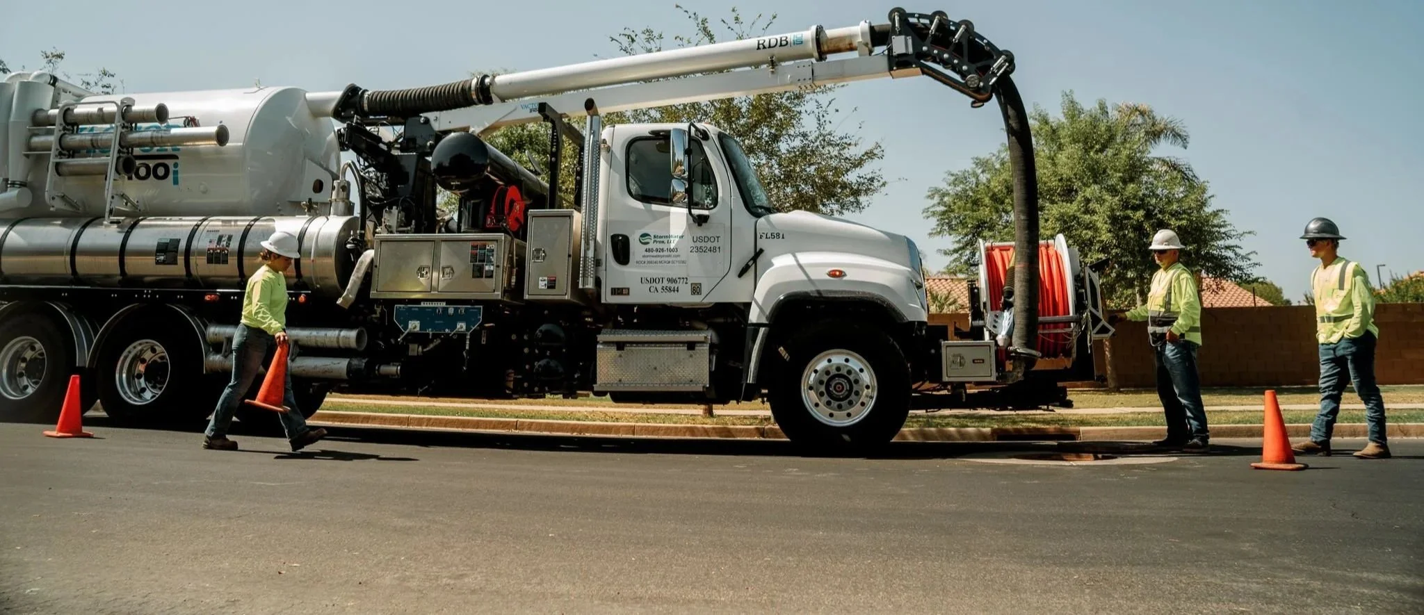 These powerful trucks combine high-pressure water blasting with vacuum suction to thoroughly clean critical stormwater system infrastructure components such as sewer lines, catch basins, culverts, and storage or drainage basins. Operated by experienced technicians, this advanced equipment helps keep these stormwater systems functioning at peak performance by removing debris, sediment, and contaminants. The result is improved stormwater flow, reduced blockages, and better protection for both public health and the environment.